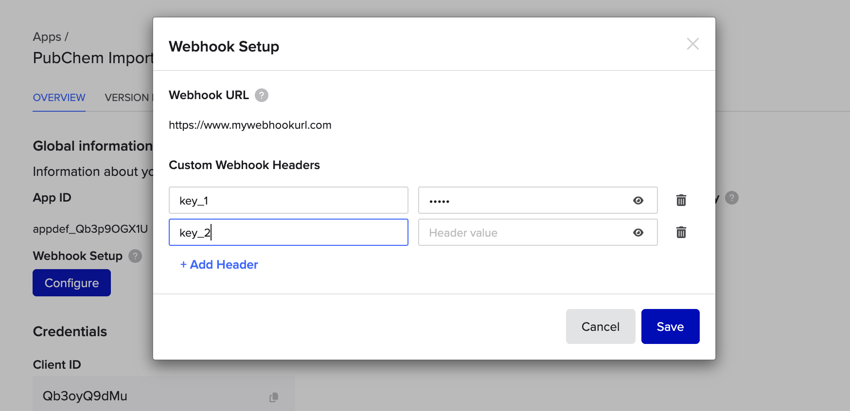 }Experimental feature: Custom webhook headers